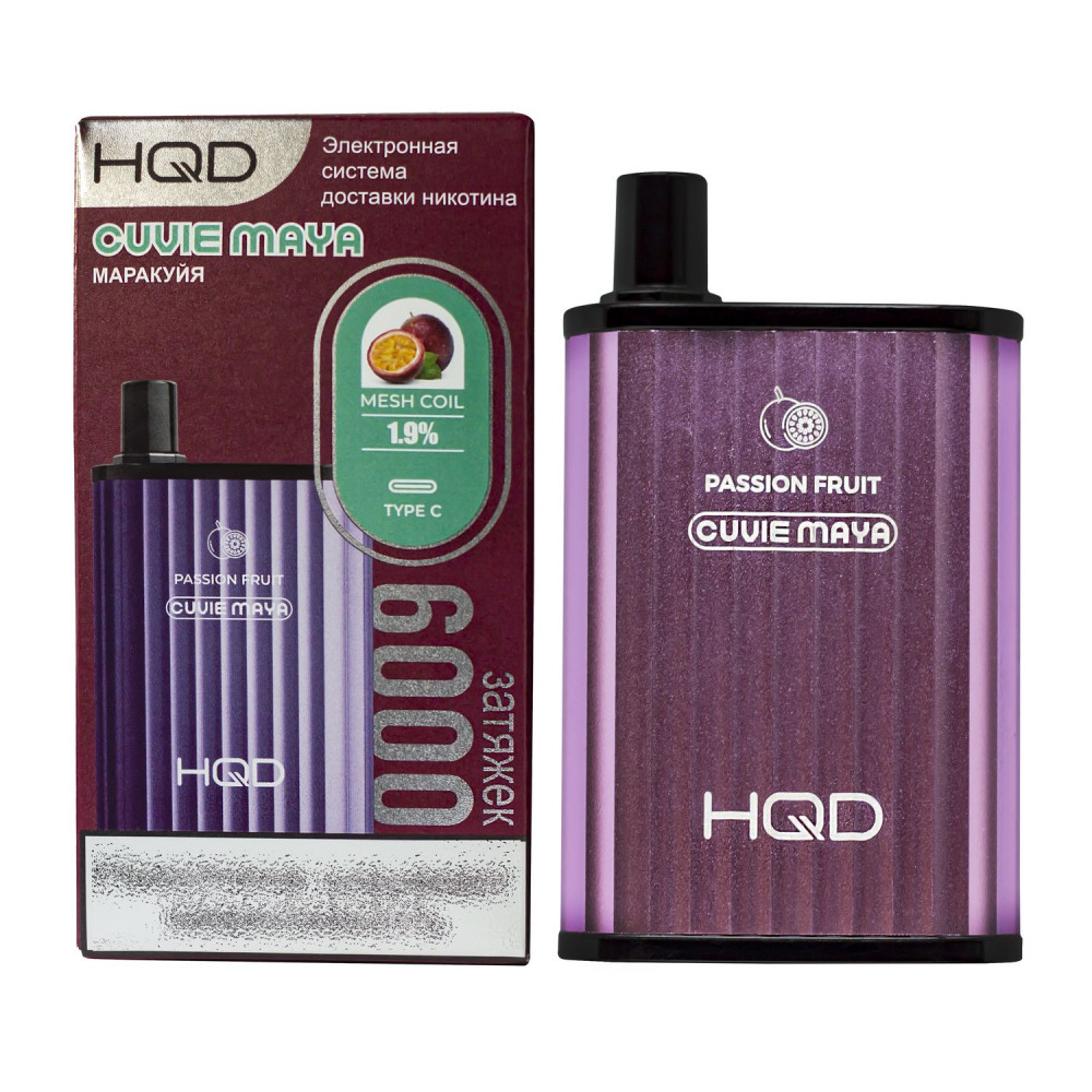 HQD видыCuvie MAYA (Куви Мая) HQD вкусыМаракуйя HQD количество в блоке5 шт